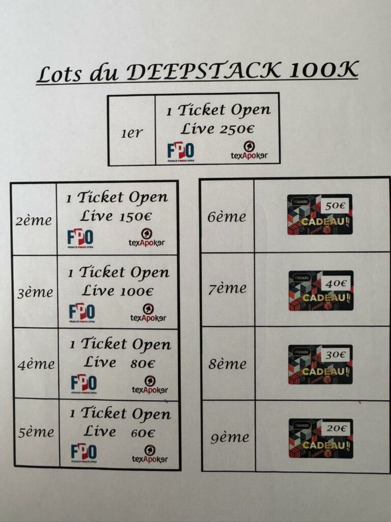 Voici la répartition des gains / récompenses dédiés à notre DEEPSTACK ou les 9 premières places seront récompensées.