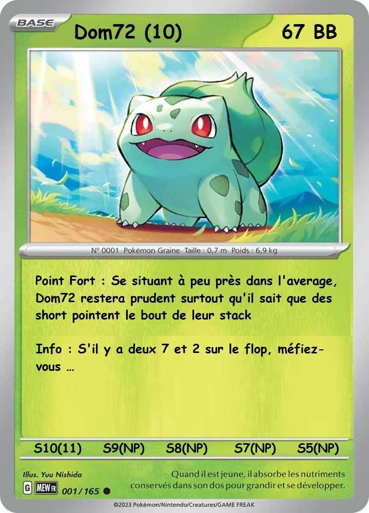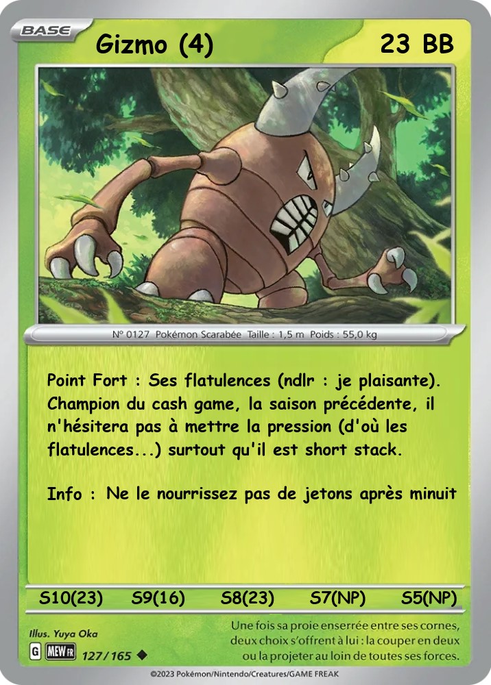 Et bien c’est simple, des petites cartes qui ne manqueront pas de vous rappeler quelque chose, ont été élaborées par Romax, Missparker et votre humble serviteur, pour présenter chacun des joueurs : expérience sur les deepstacks précédents, points forts, points faibles ou info importantes , … autant d’éléments qui doivent aiguiller votre bet (pari in english).