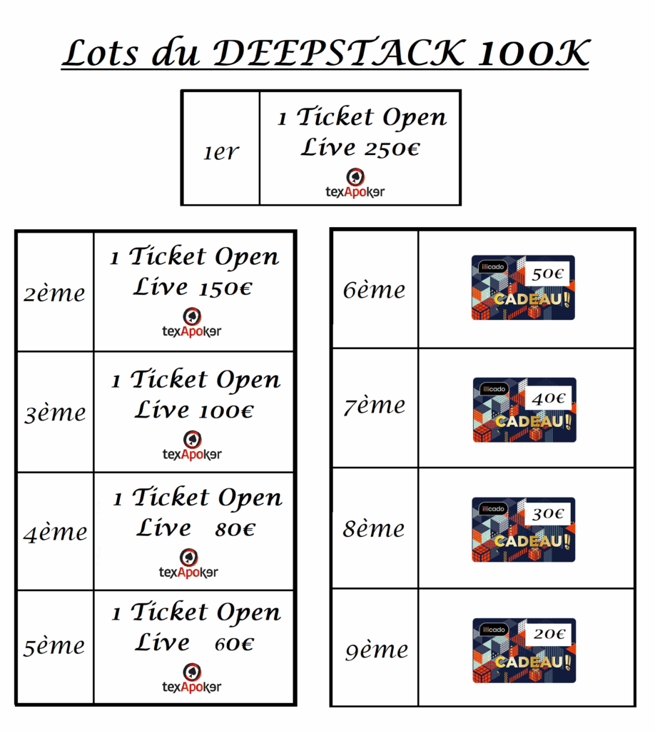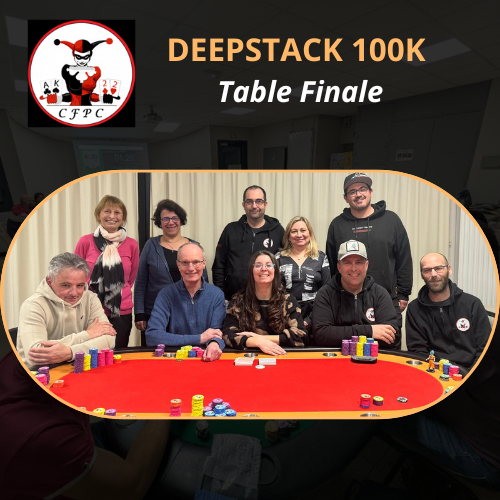 5ème acte de notre cher et tendre DEEPSTACK 100K, notre tournoi « fil rouge » qui se déroule tout au long de l’année !