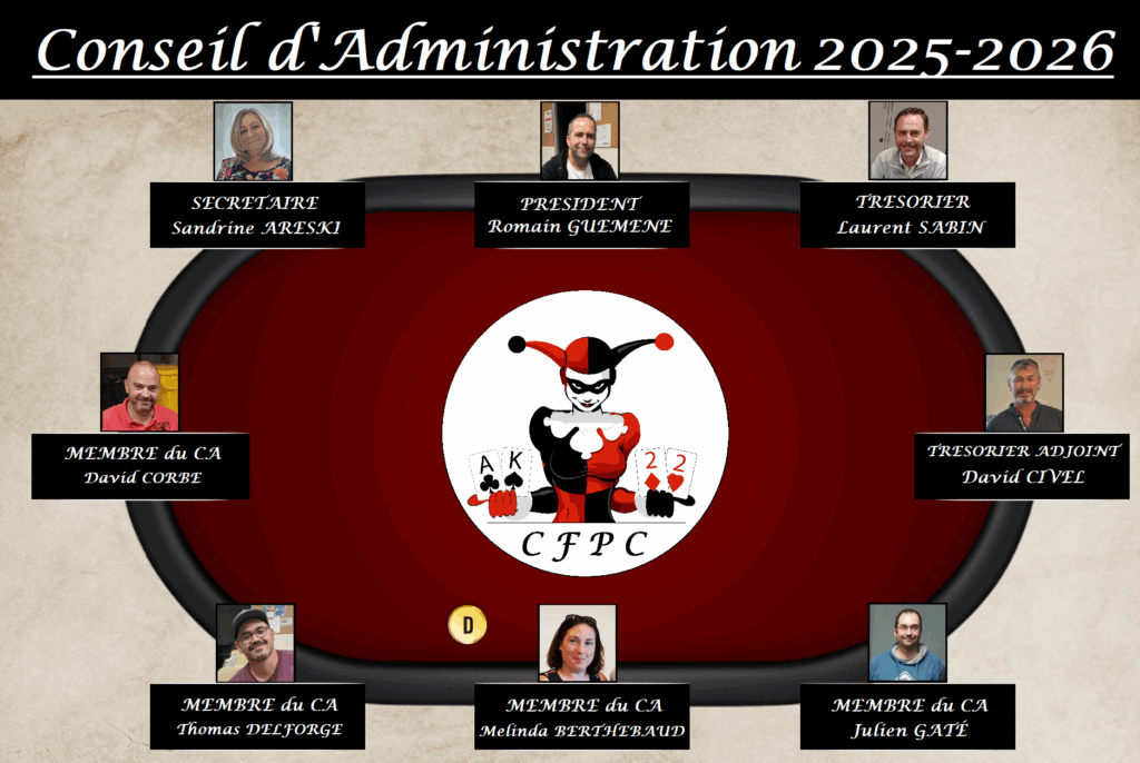 – d’affirmer et développer les valeurs véhiculées par le poker, c’est-à-dire : convivialité, réflexion, esprit de compétition, maîtrise de soi et le respect des joueurs.